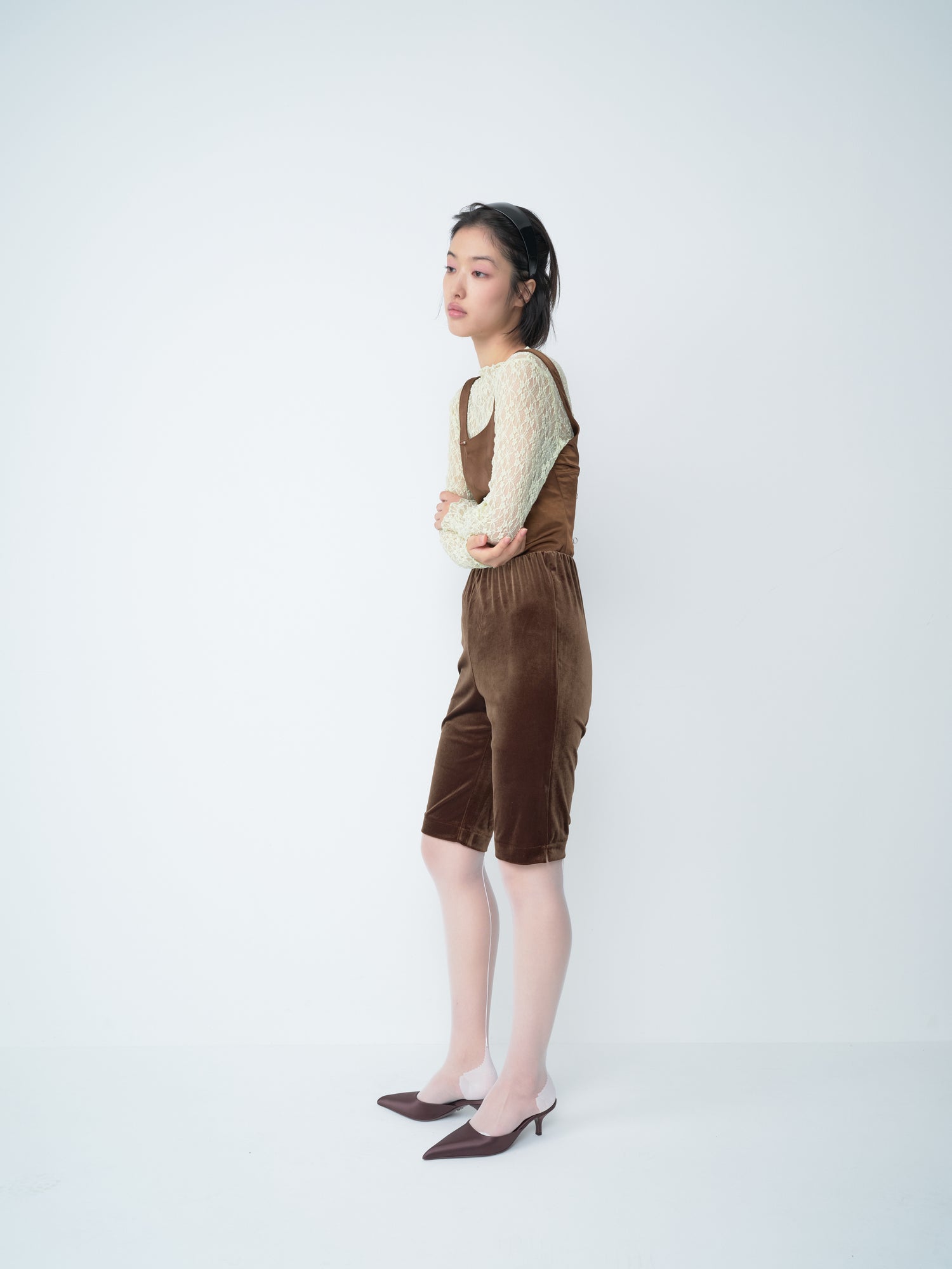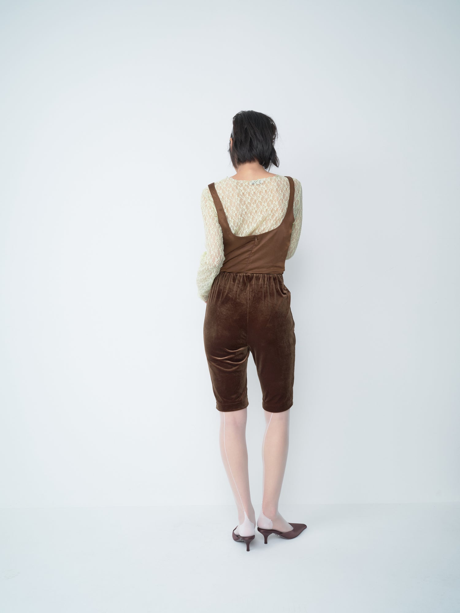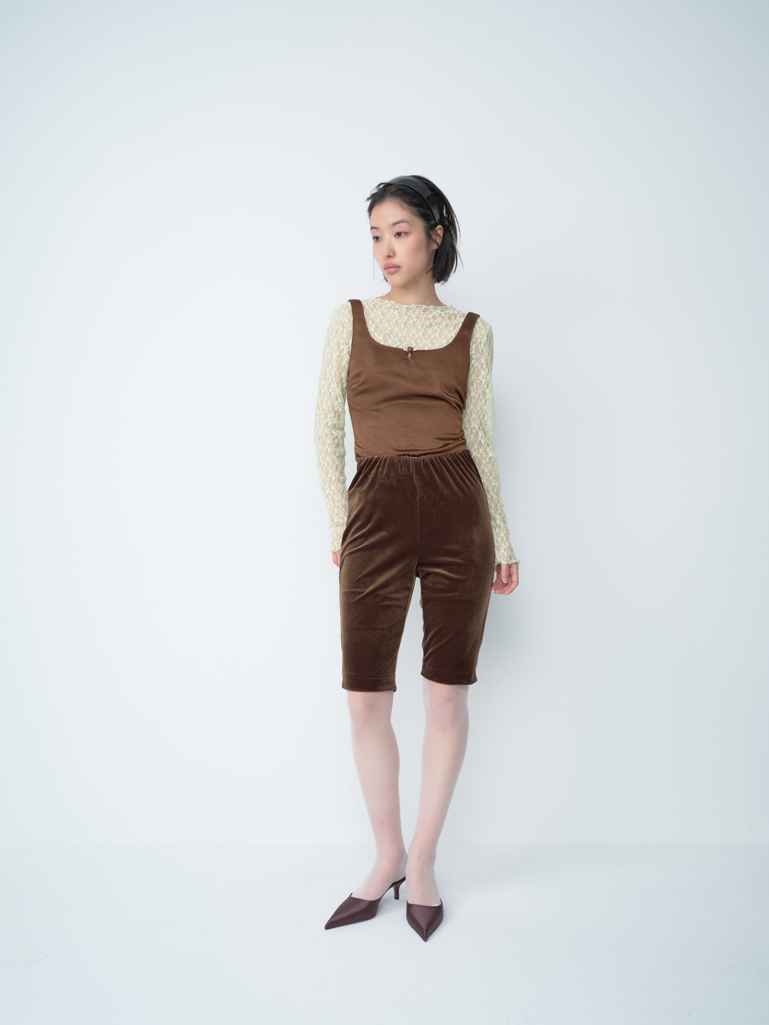 - 소프트한 벨루어 소재의 카프리 팬츠